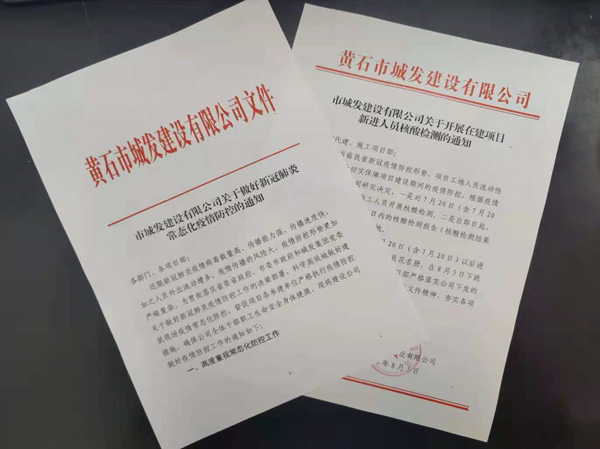 鑒于項目工地人員密集,流動性大的特點,8月5日,公司印發(fā)了《市城發(fā)建設(shè)有限公司關(guān)于開展在建項目新進人員核酸檢測的通知》,為切實擔負起防疫抗疫責任,有效降低人員流動引發(fā)的疫情傳播風(fēng)險,要求7月20日以來新進項目員工須持3日內(nèi)合格核酸報告進入項目工地。